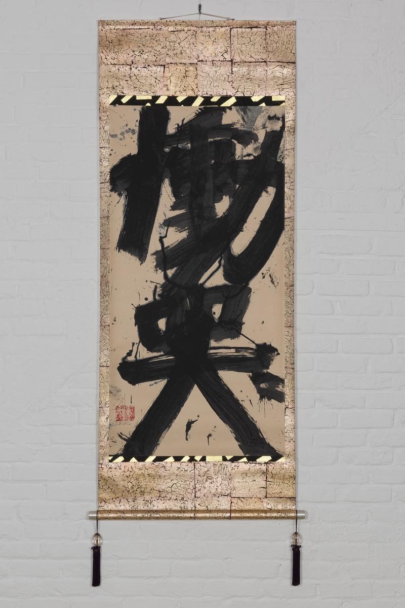 Un kakemono (rouleau suspendu) avec la calligraphie "Dōkoku" (Lamentation)