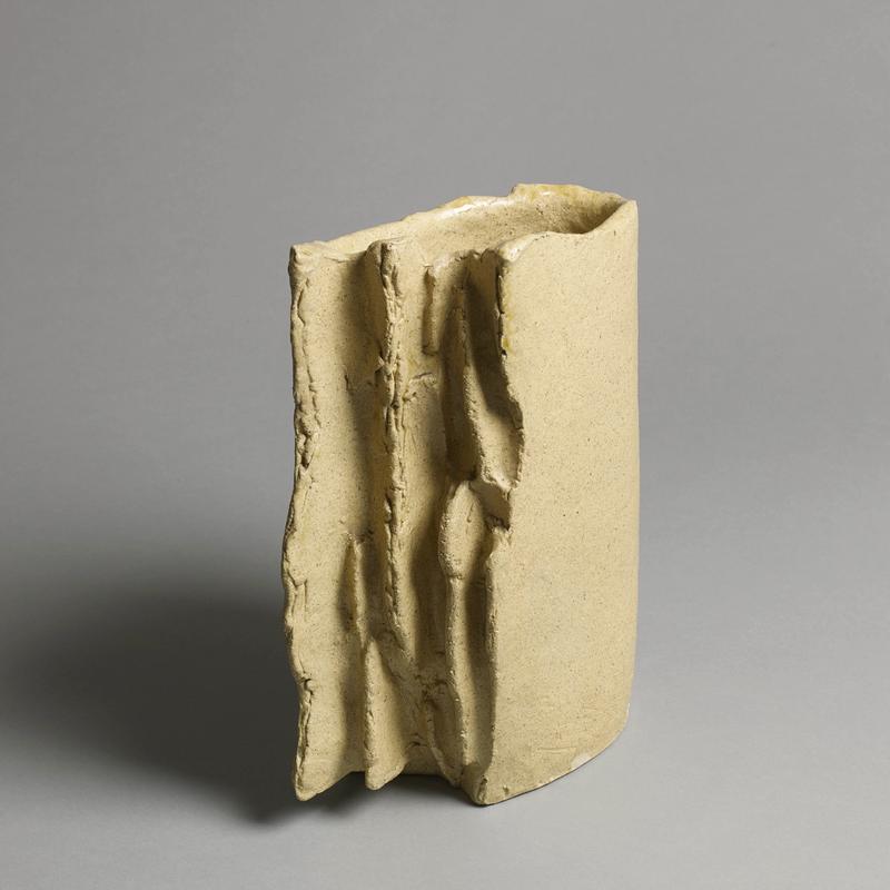 Vase asymétrique en poterie de forme abstraite avec une glaçure de couleur sable