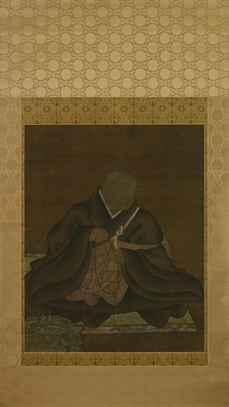 Un kakemono (rouleau suspendu) peint à l'encre et en couleur sur soie avec un portrait du moine Hōnen.