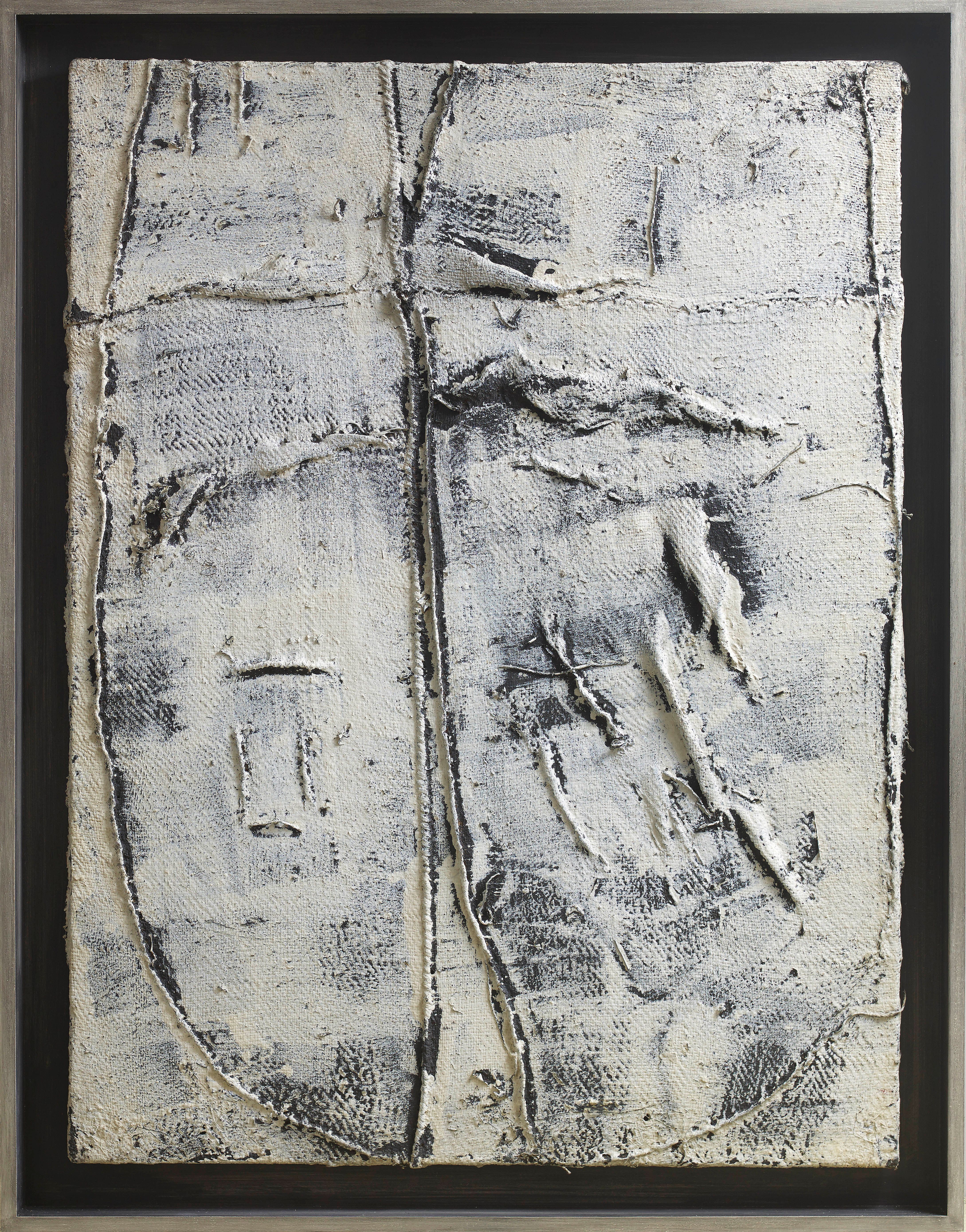 Sans titre Huile et techniques mixtes sur toile de jute cousue, encadrée