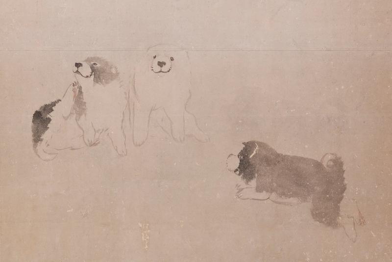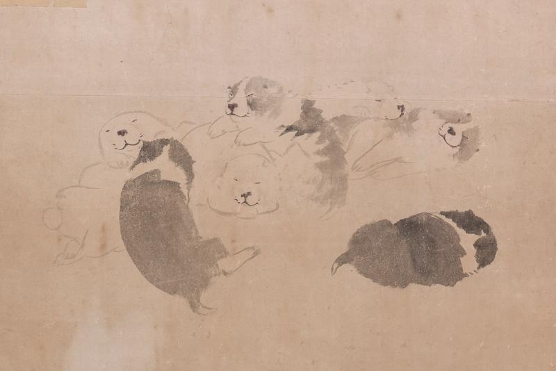 For a similar set of four fusuma in the collection of Mr & Mrs C.D. Carter, U.S.A. see: Maruyama, Seventy Years, Volume Two, p.248, pl. 464; a set of fusuma featuring puppies see: Exhibition Nagasawa Rosetsu: The 200th Anniversary of His Death. Nihon Keizai Shimbun, Inc 2000. Pp. 58 & 59, and a furosaki screen in the collection of Edo Sen-ke Kawakami Sosetsu, Tokyo, see: Nagasawa Rosetsu The Fanciful Painter, Miho Museum, pp. 96 & 97, pl. 40.
