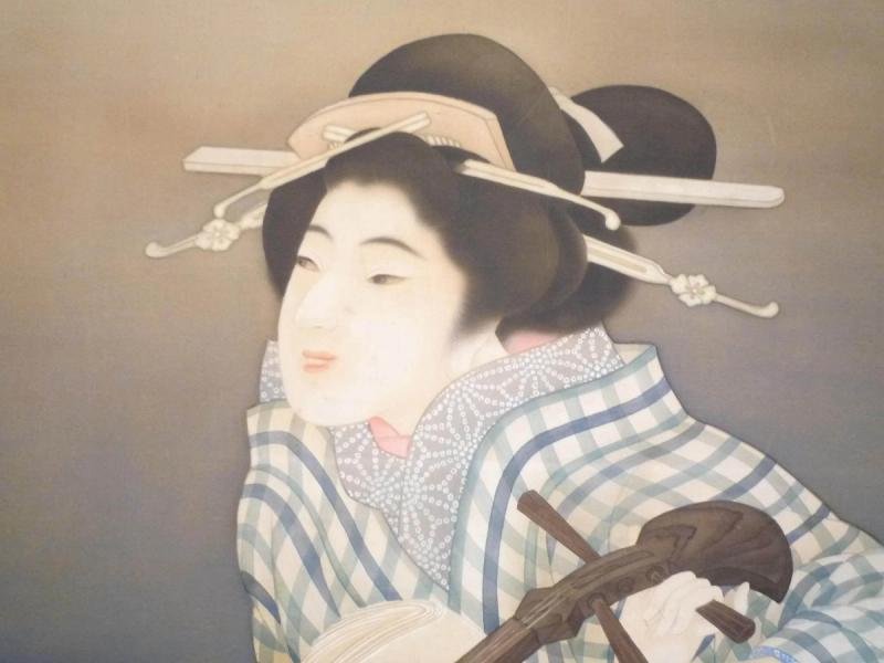 For a similar example of a painting of a Geisha see: Drama and Desire; Japanese Paintings from the Floating World 1690-1850, p. 163, pl. 44.