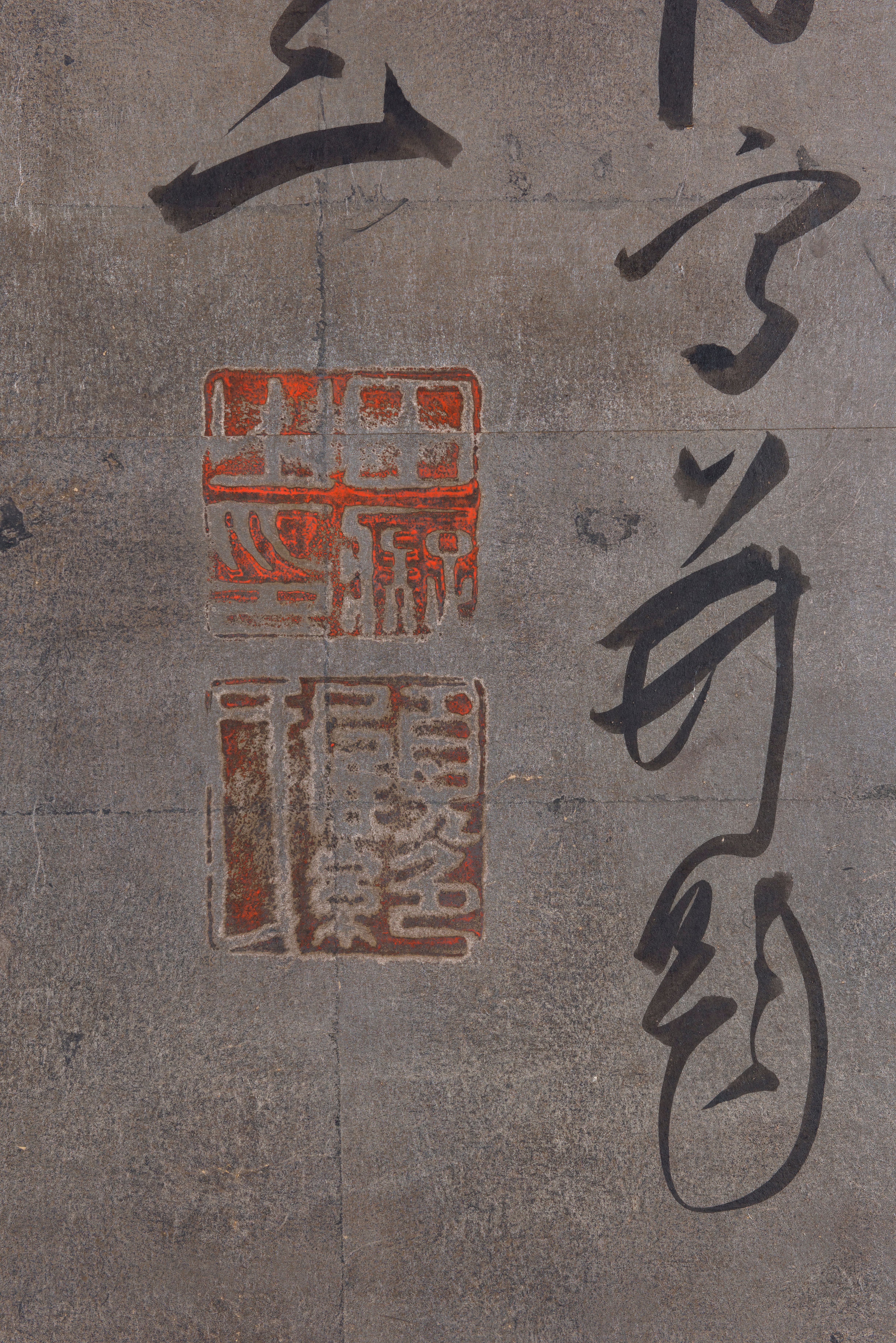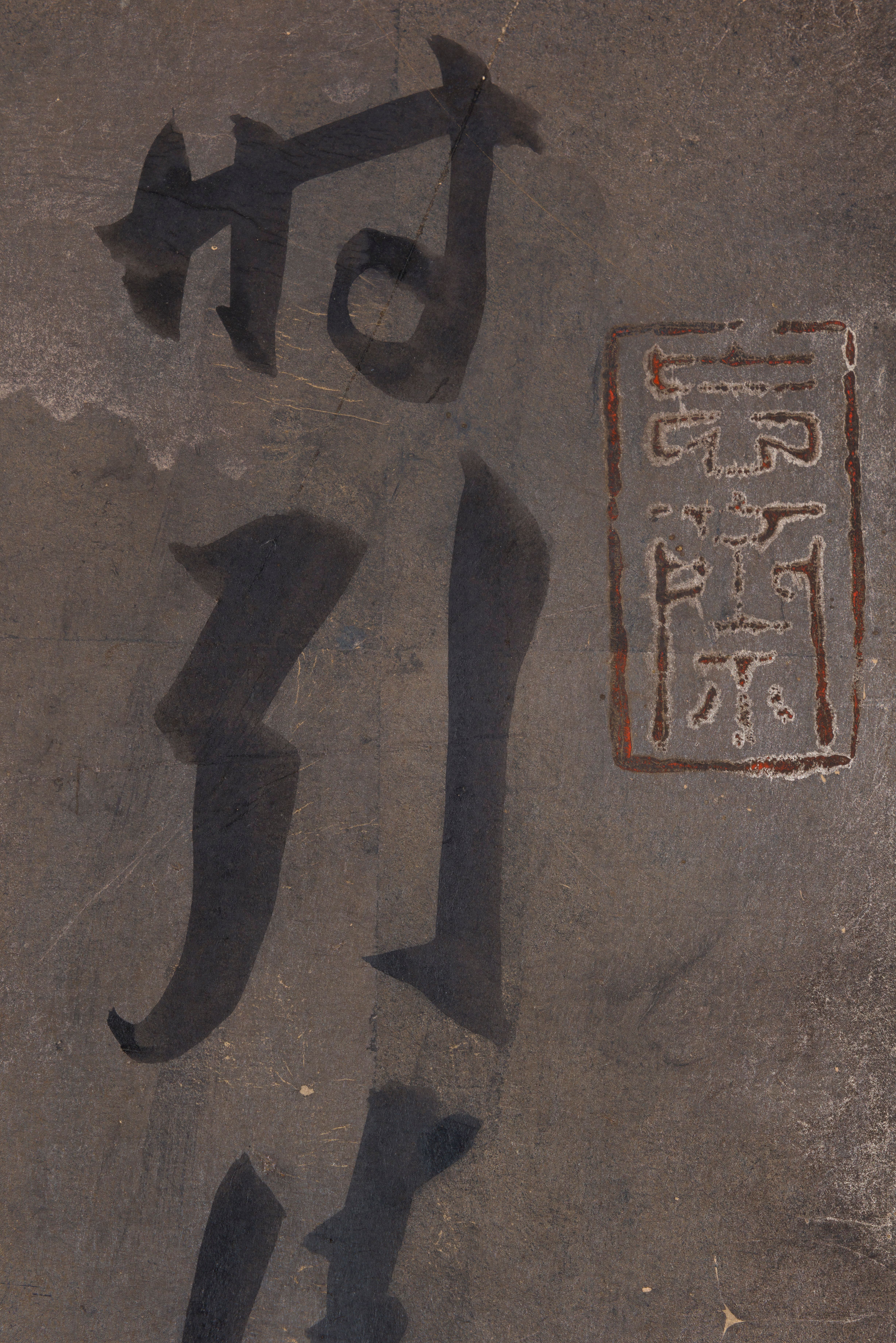 Tanomura Chokunyū (1814-1907) Gō (art name): Chokunyū, Incha Shujin, Ryūō (Kasaō), Sanshō, Seiwan, Seiwan Gyorō, Shōko, Shōko Sanjin. Born in Bungo Province Chokunyū was a nanga (Chinese style) painter, calligrapher and poetwho lived and worked in Kyoto. He was the pupil and adopted son of Tanomura Chikuden (1777-1835) and as part of his artistic training he copied late Chinese painting. He was a key person in establishing the Kyōto Munincipal School of Fine Arts and Crafts and was its first director before leaving to co-found the Nihon Nanga Kyōkai (Japan Nanga Society) in 1896 with Tomioka Tessai (1837-1924). Chokunyū was a leading exponent of the nanga tradition in the Meiji era with many pupils and served a juror for many exhibitions.