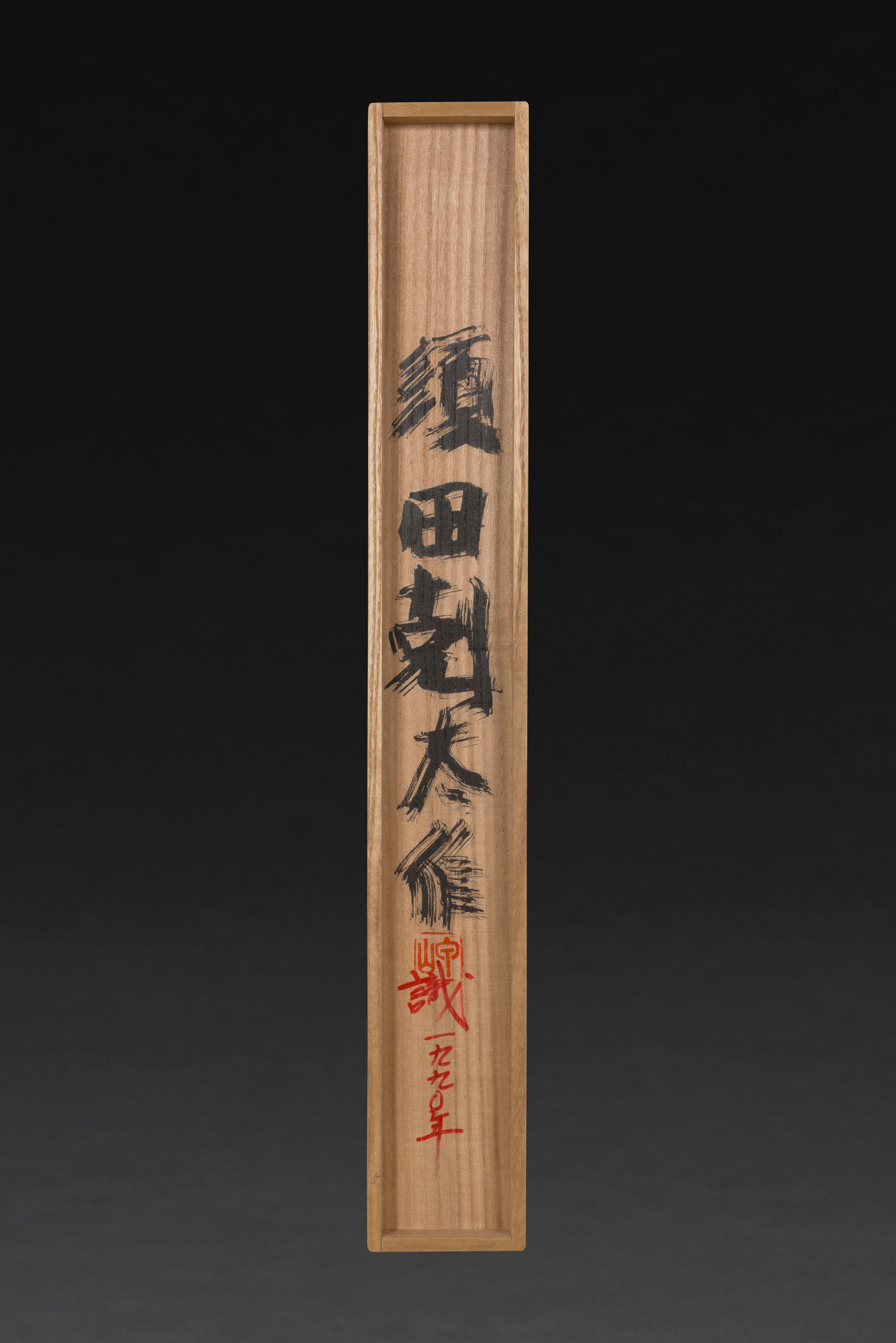 Lid interior: Suda Kokuta saku (Made by Suda Kokuta) Sealed Misaki. Shiki 1990 (Attestation 1990).
