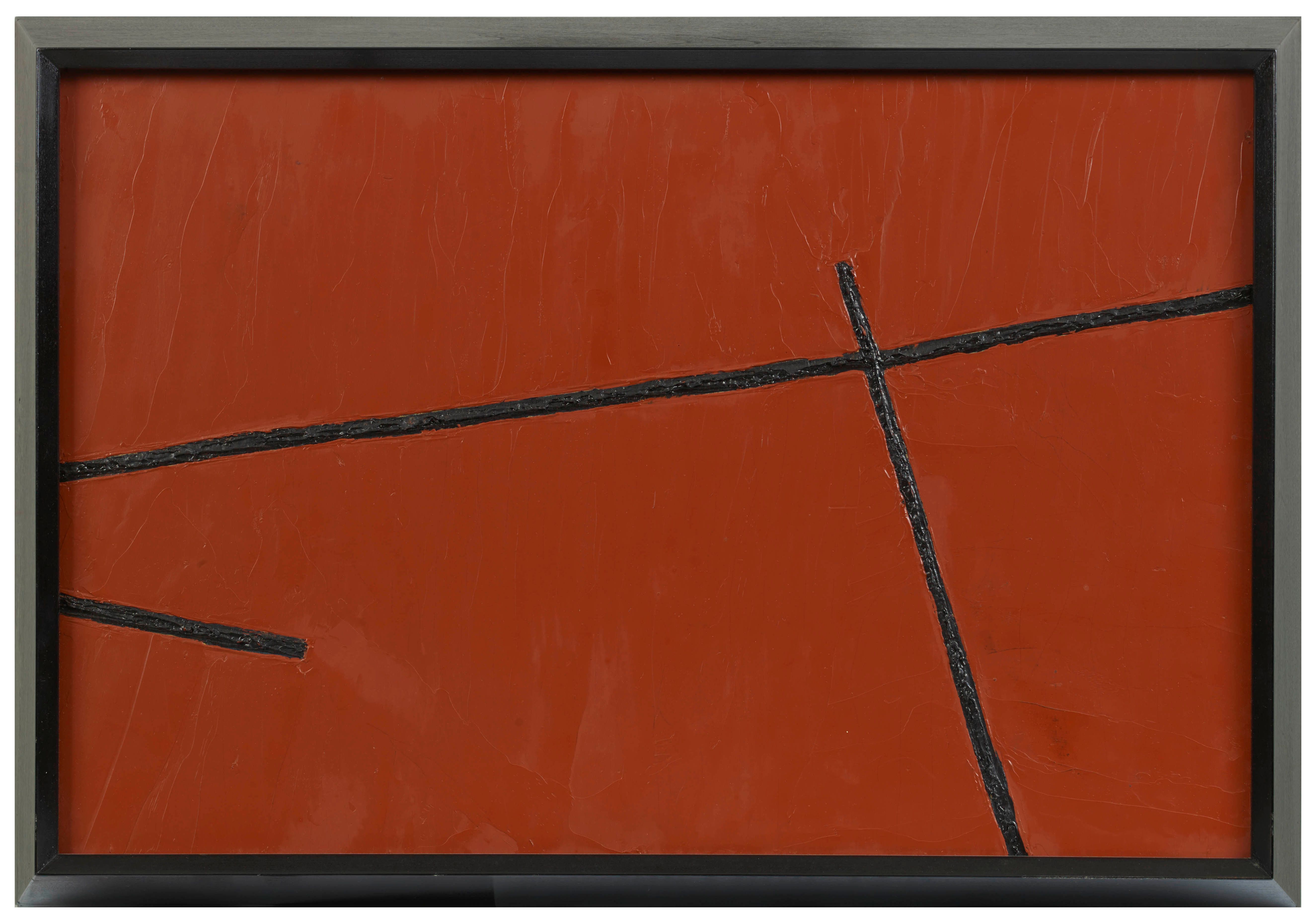 Signed, titled and dated September 1972 in Japanese on a label affixed to the reverse, framed.