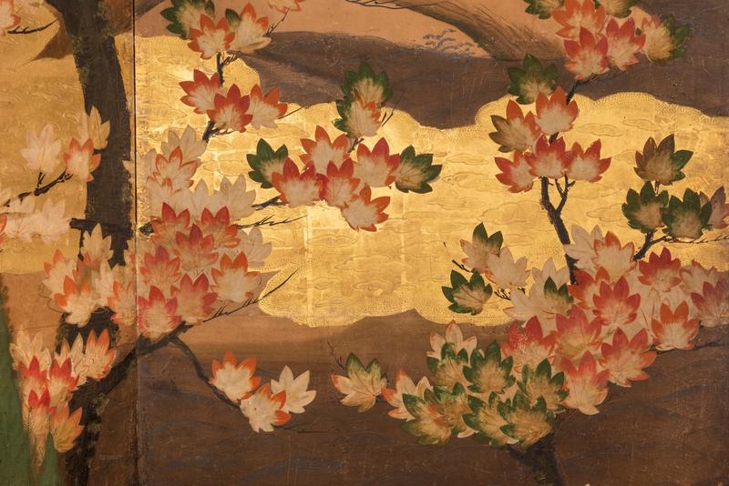 Maple (momiji) shares pride of place with cherry blossom (sakura) as one of the two most important seasonal symbols in Japan. The changing colours of its leaves have long captivated the people of Japan and this much admired autumnal motif has been mentioned in poems and literature such as Manyōshū (Collection of Ten Thousand Leaves), Nara period (645-781); The Tale of Genji from the Heian period (782-1184); and the popular Noh play Momiji-gari (Maple Viewing) of the Muromachi period (1392-1572). It is one of the most popular subjects in Japanese paintings and works of art.