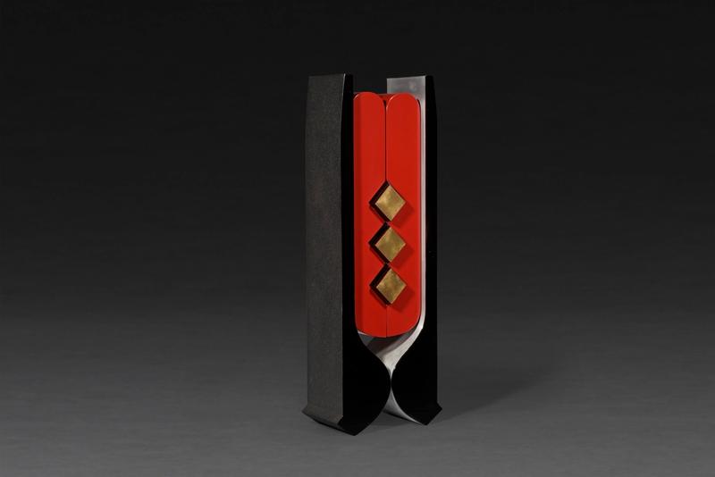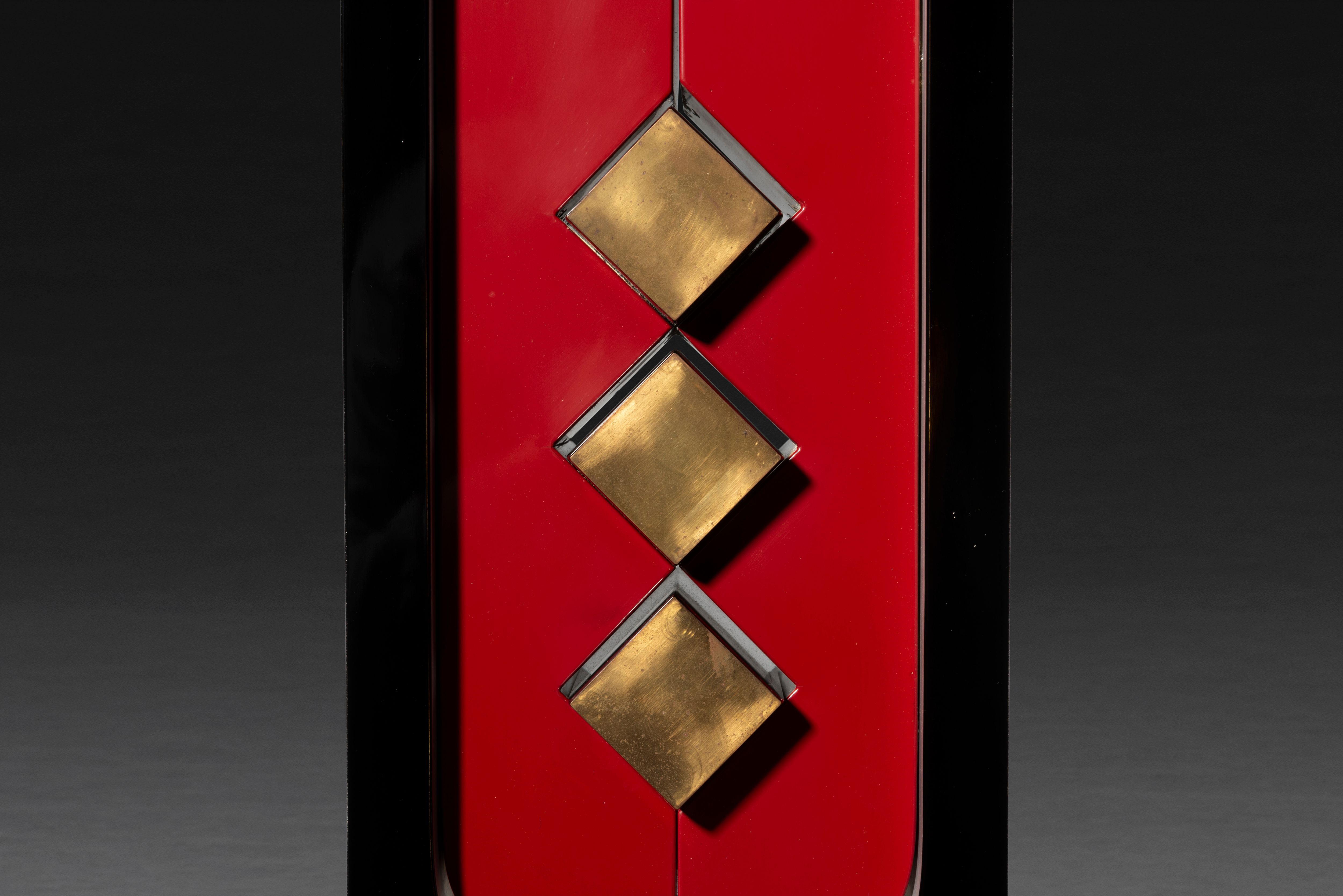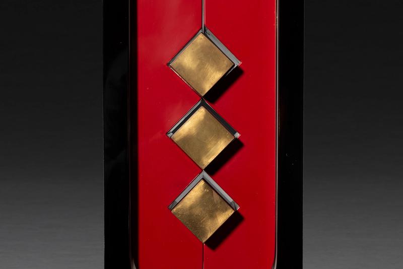 Untitled - Lacquer on wood, suzuita (tin sheet) and brass