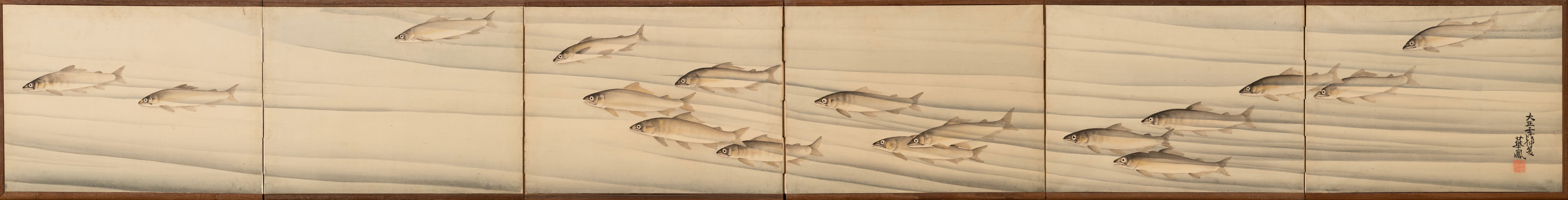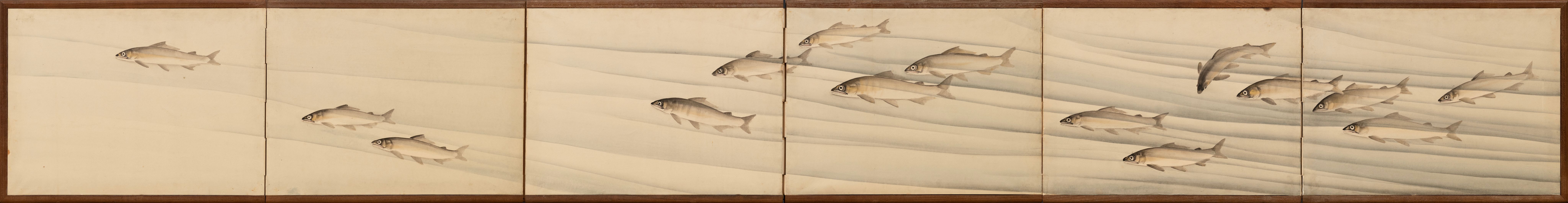 A pair of six-fold paper with sweetfish