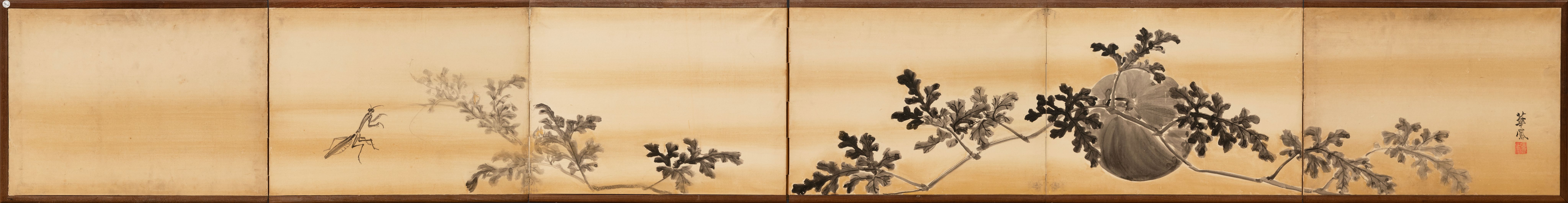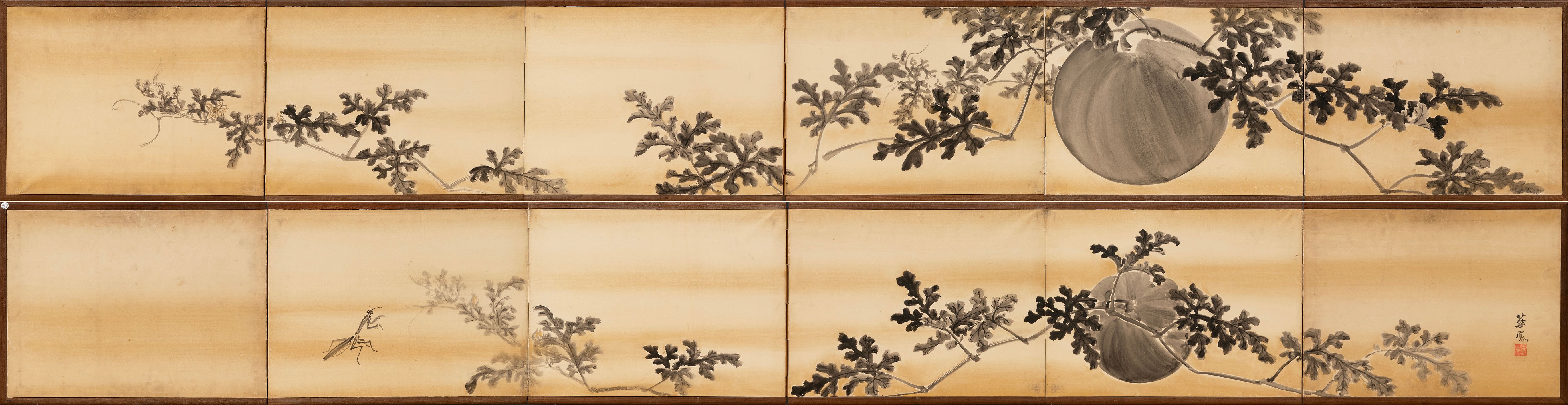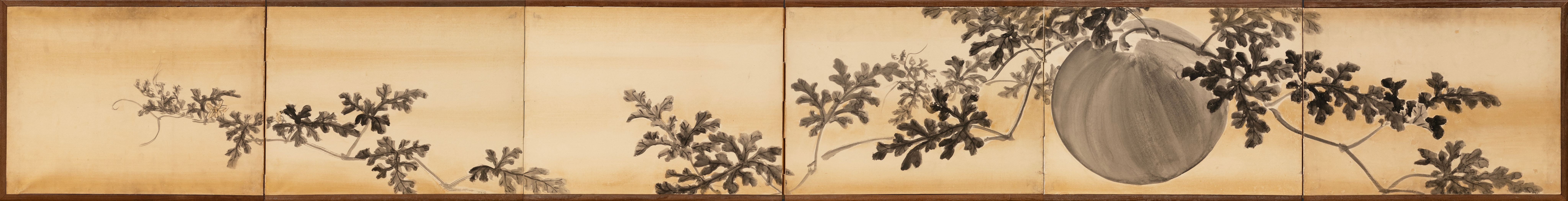 A six-fold screen with grape vines