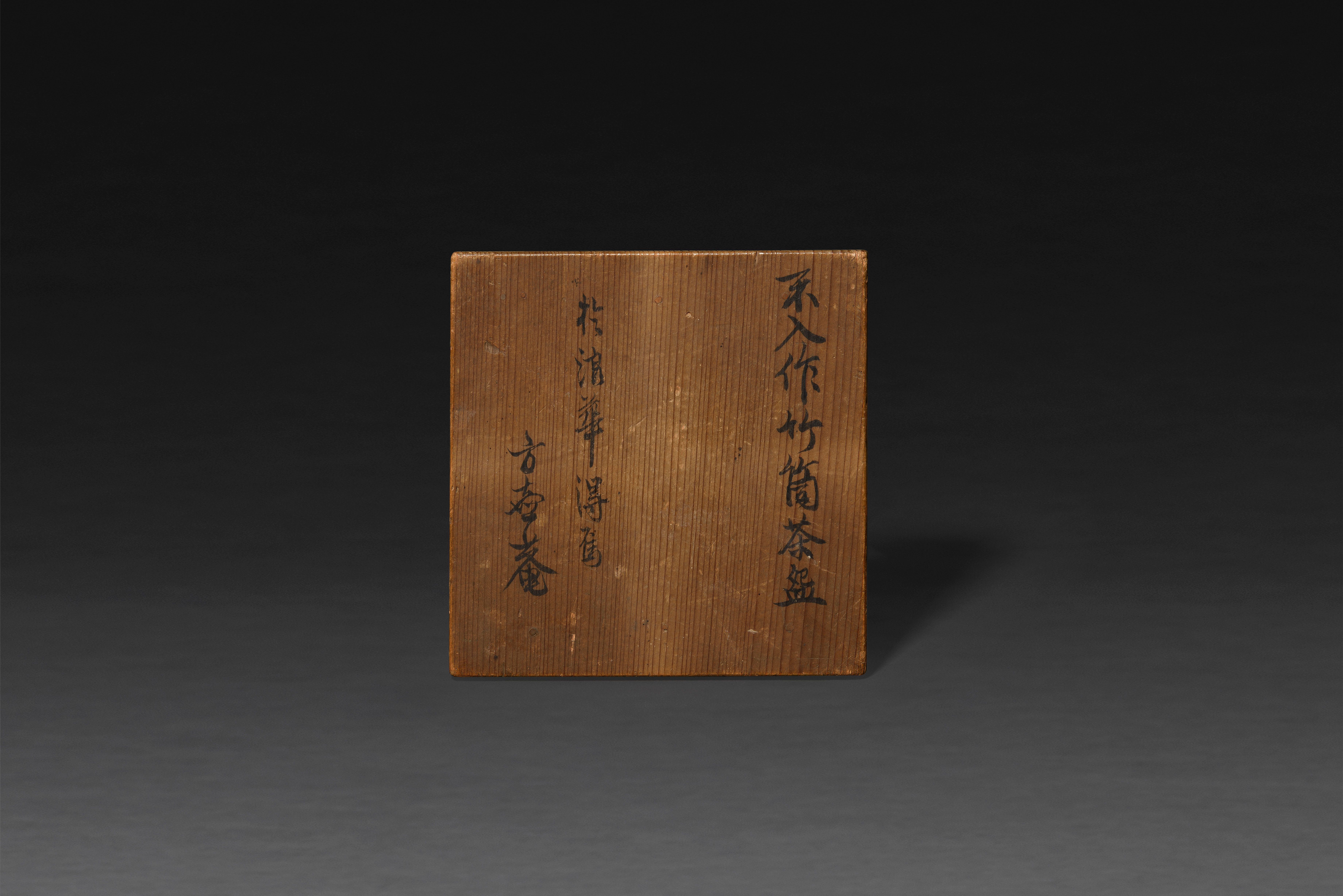 Lid: Funyū saku Takezutsu chawan (Bamboo-cylinder teabowl by Funyu); Naniwa ni oite shiu (it is done in Naniwa/Osaka), Ho?an