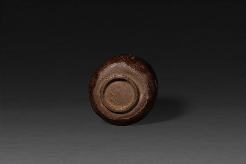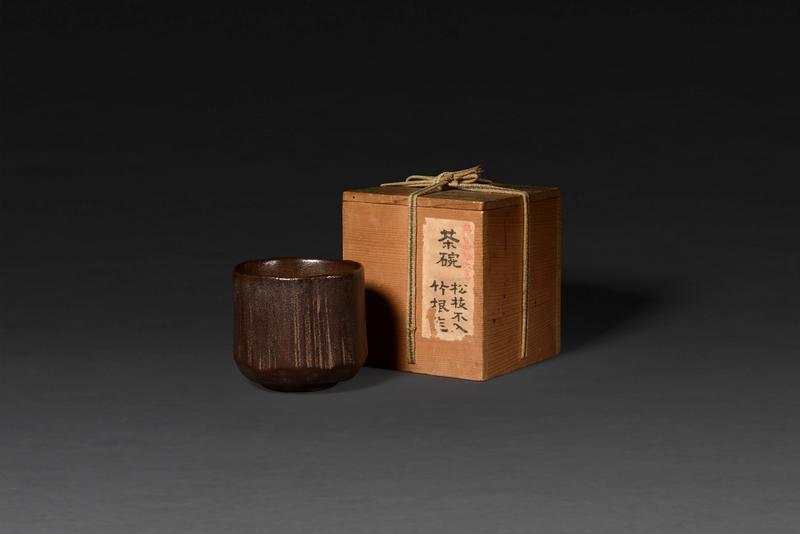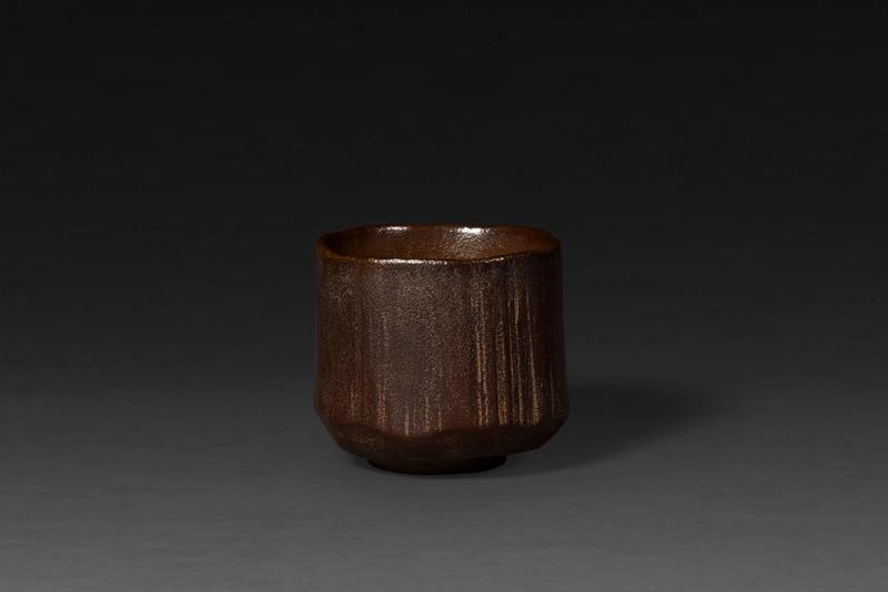 A kanshitsu chawan (dry-lacquer teabowl) of bamboo shape